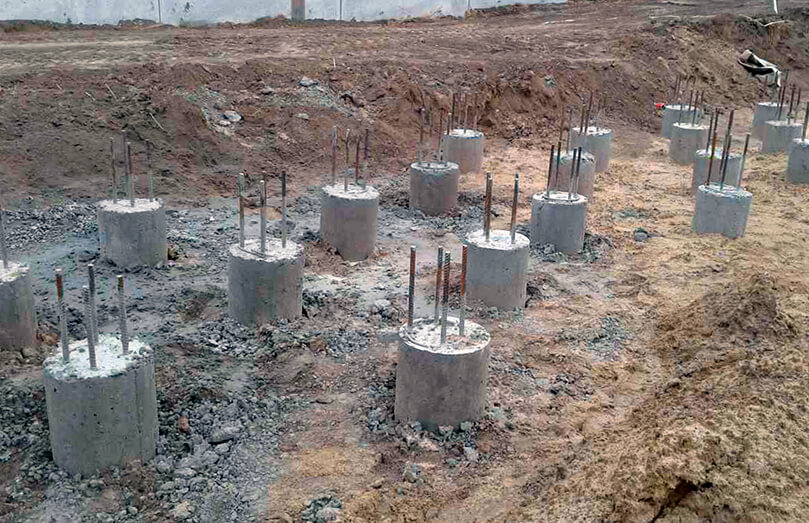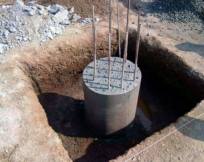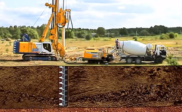 Технология устройства буронабивных свай включает в себя процессы: бурение скважин, их армирование и заполнение бетоном прямо на месте работ.