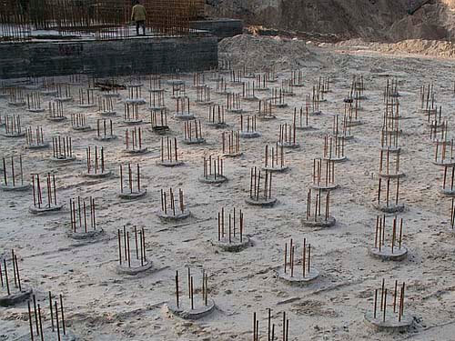 • буроинъекционные (инжекционные) – в скважину небольшого диаметра инжектируют бетонный мелкозернистый раствор на основе цемента и каменного отсева; буроинъекционные – после бурения скважины через полый шнек подают под давлением бетонный раствор и понемногу вынимают шнек;