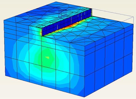 Задача решена в плоской постановке, подобрана конструкция ограждения котлована отвечающая требованиям заказчика, по величине допустимых деформаций подкрановых путей, разработан рабочий проект ограждения котлована